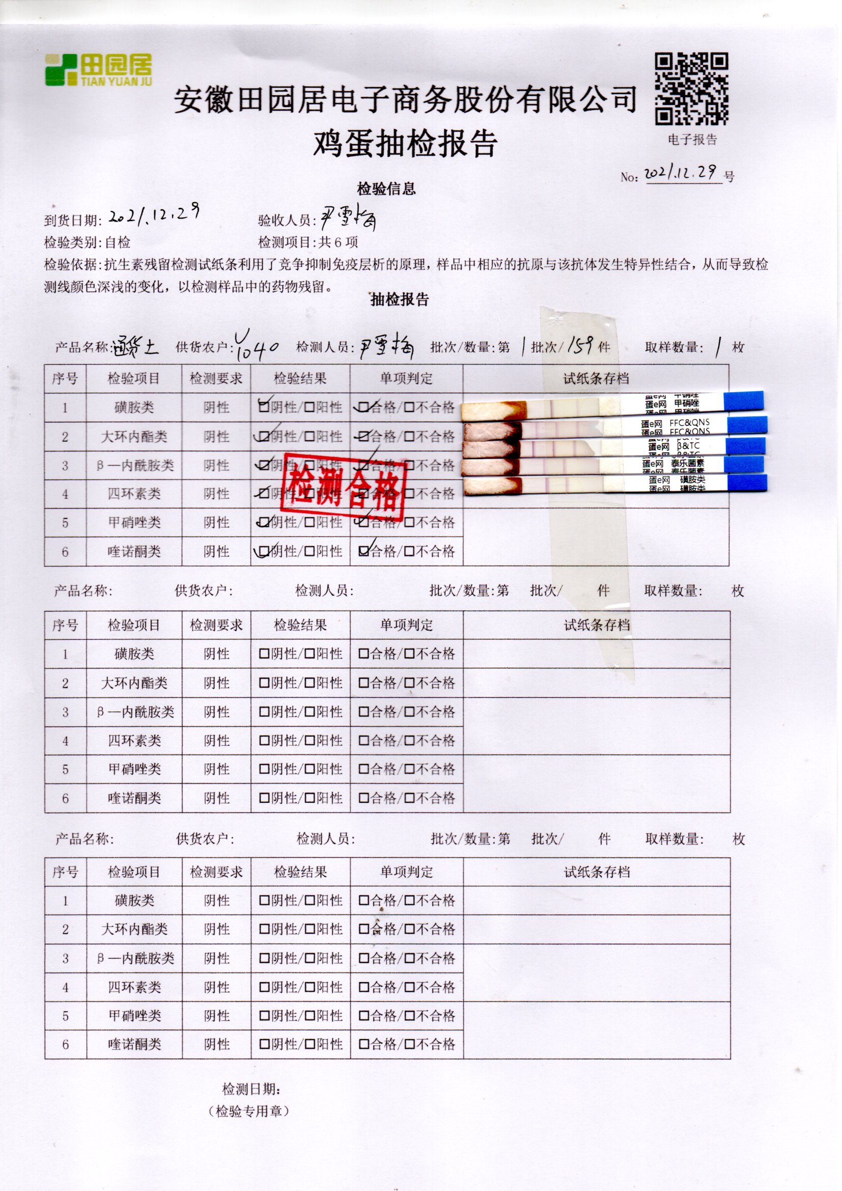 2021年12月29号鲜鸡蛋检测报告