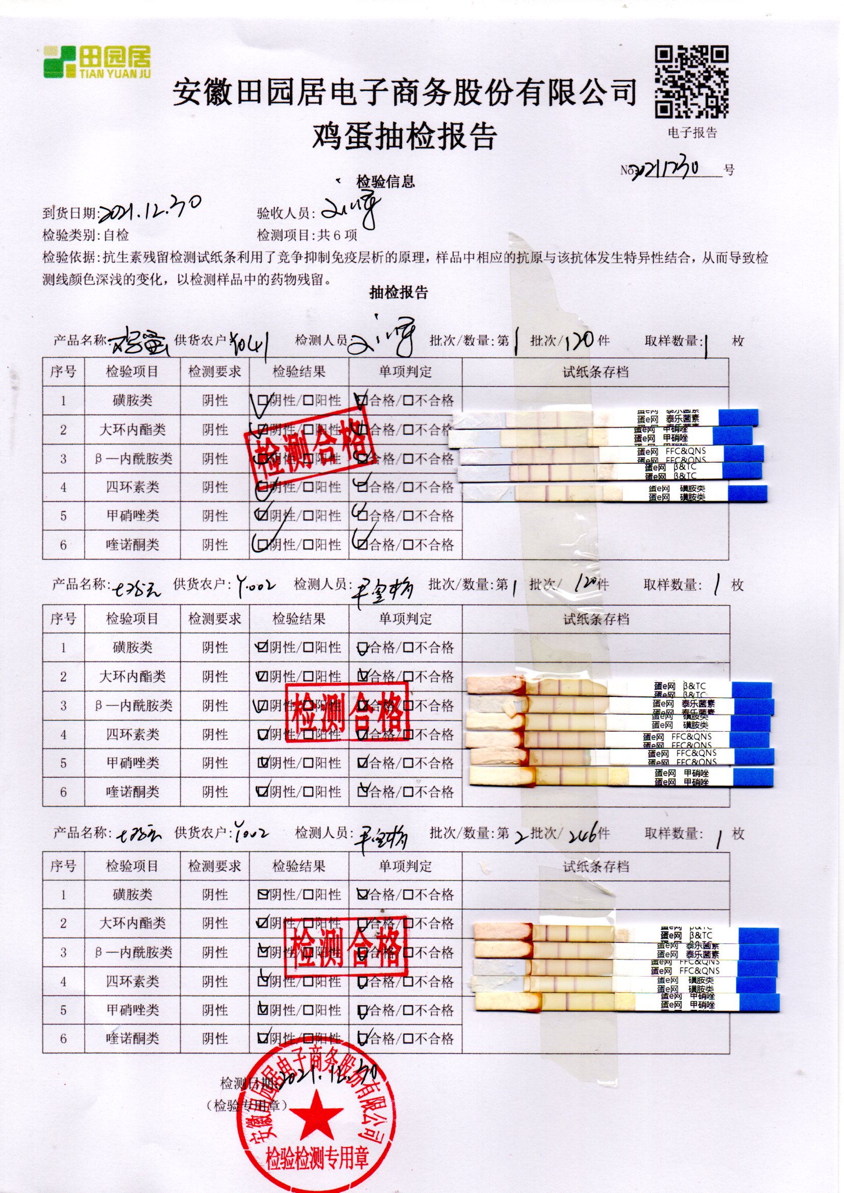 2021年12月30号鲜鸡蛋检测报告
