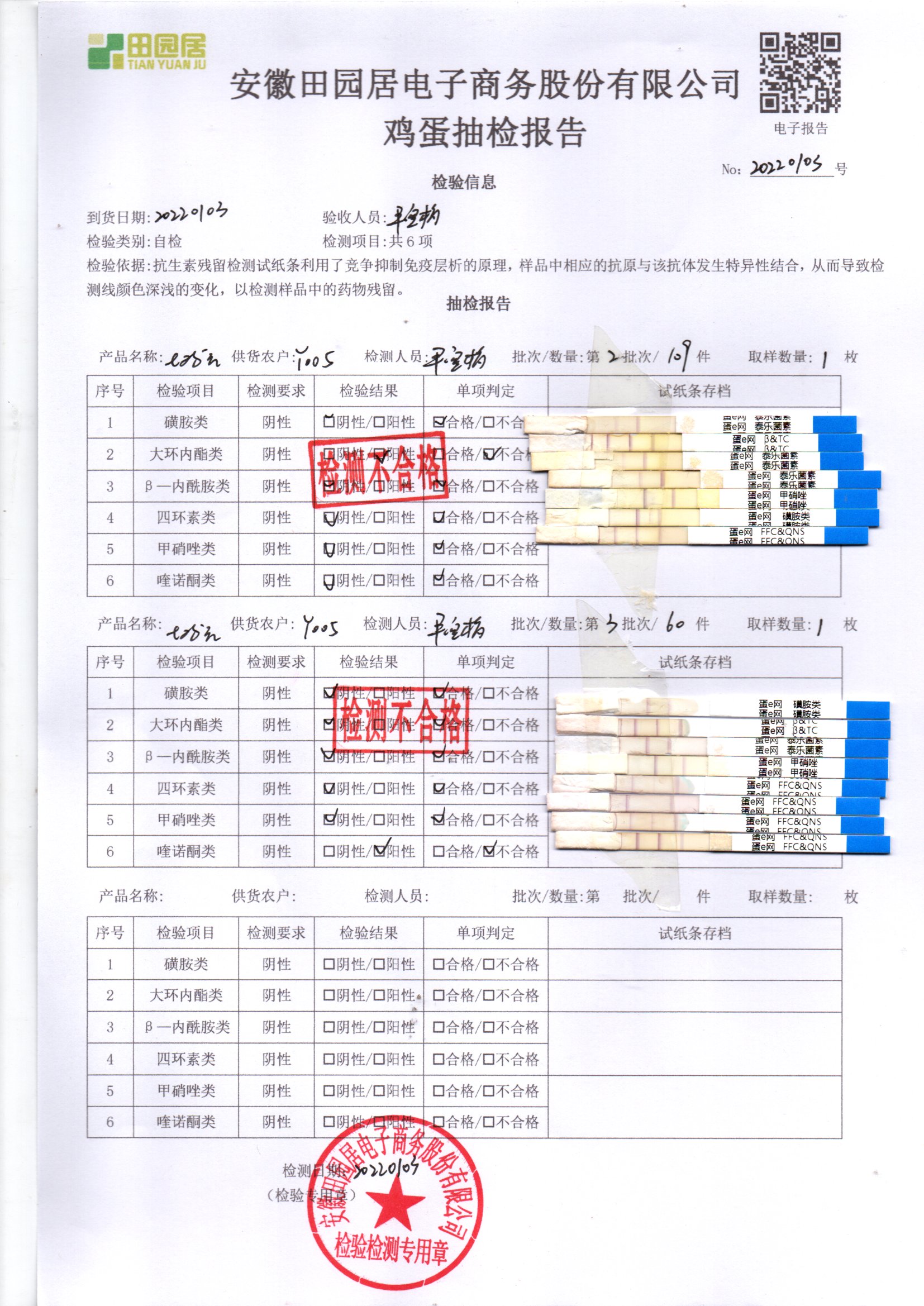 2022年01月03号鲜鸡蛋检测报告