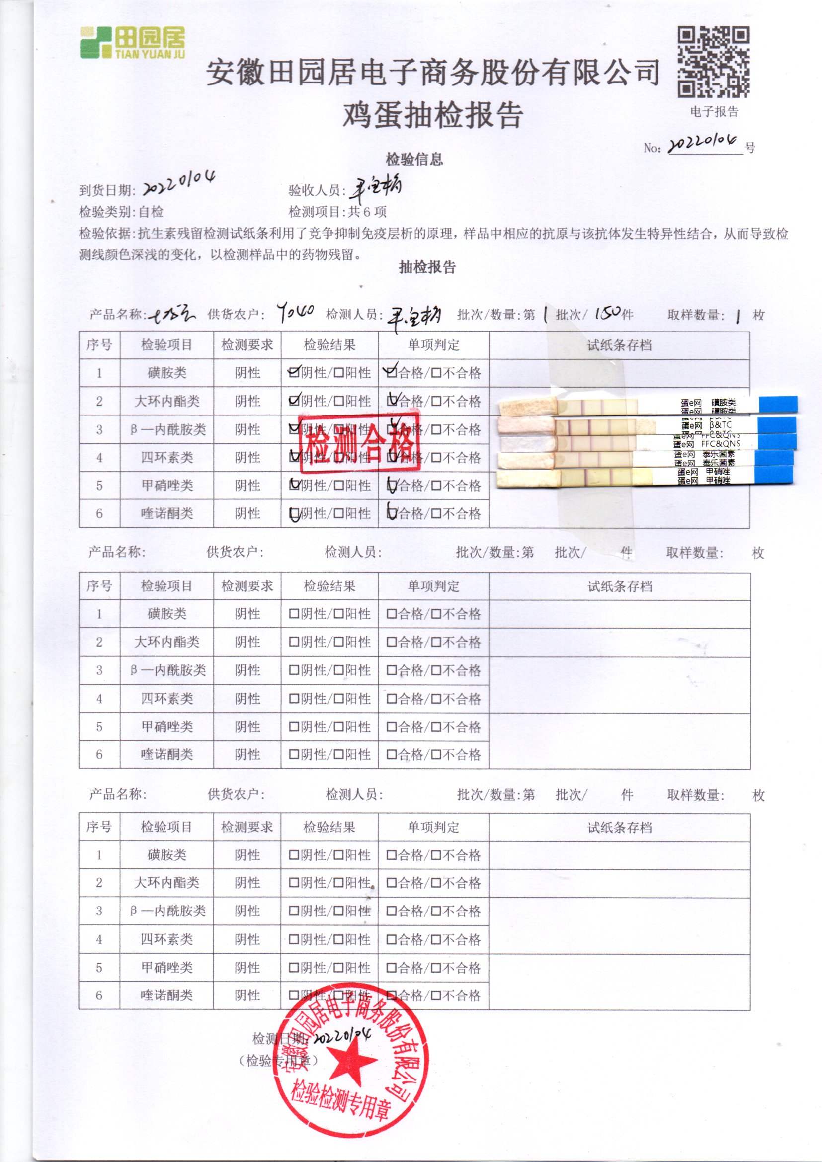 2022年01月04号鲜鸡蛋检测报告