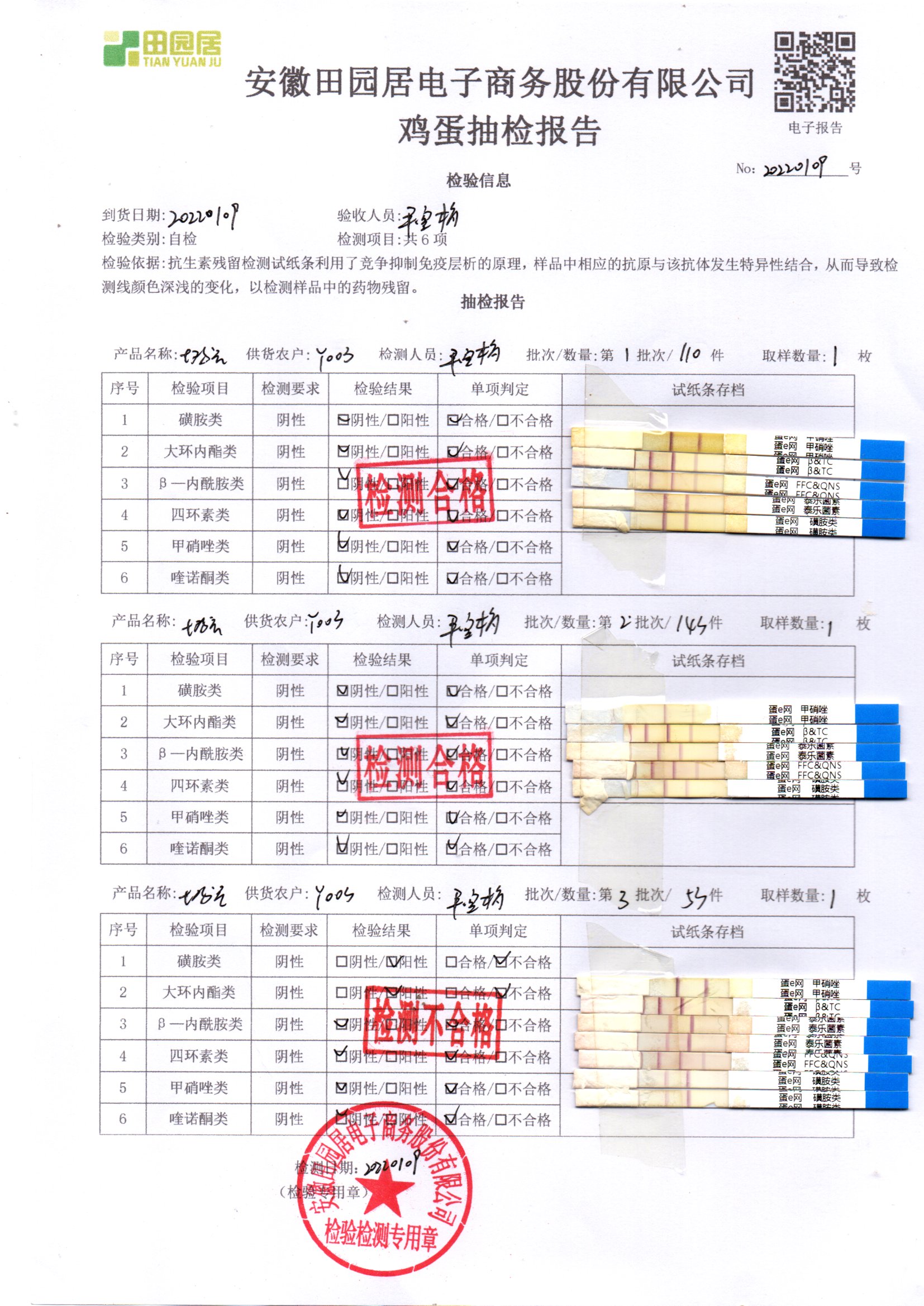 2022年01月09号鲜鸡蛋检测报告