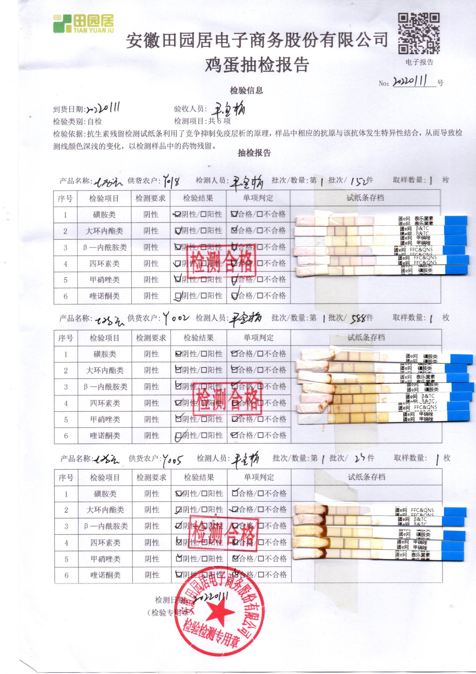 2022年01月11号鲜鸡蛋检测报告