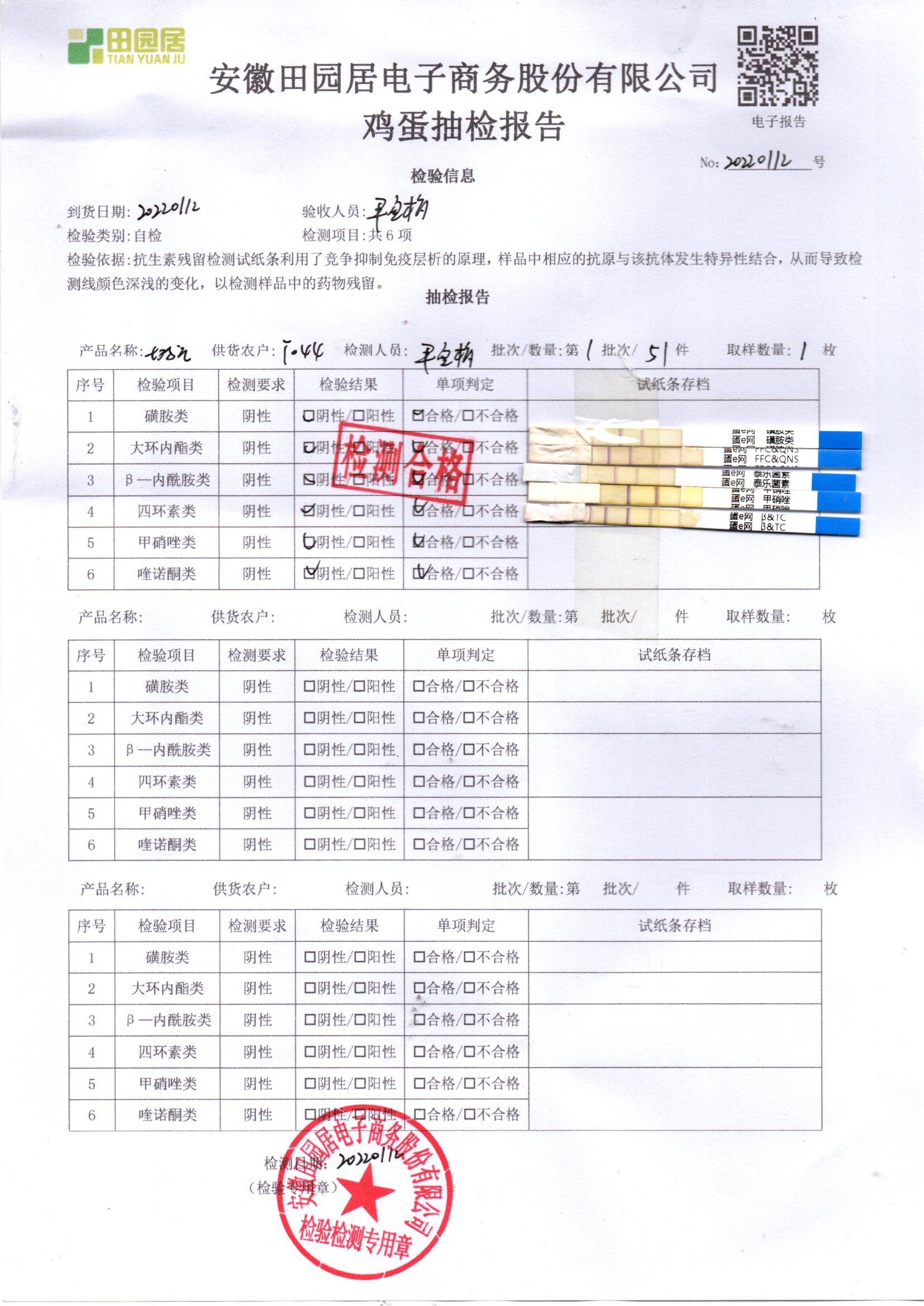 2022年01月12号鲜鸡蛋检测报告