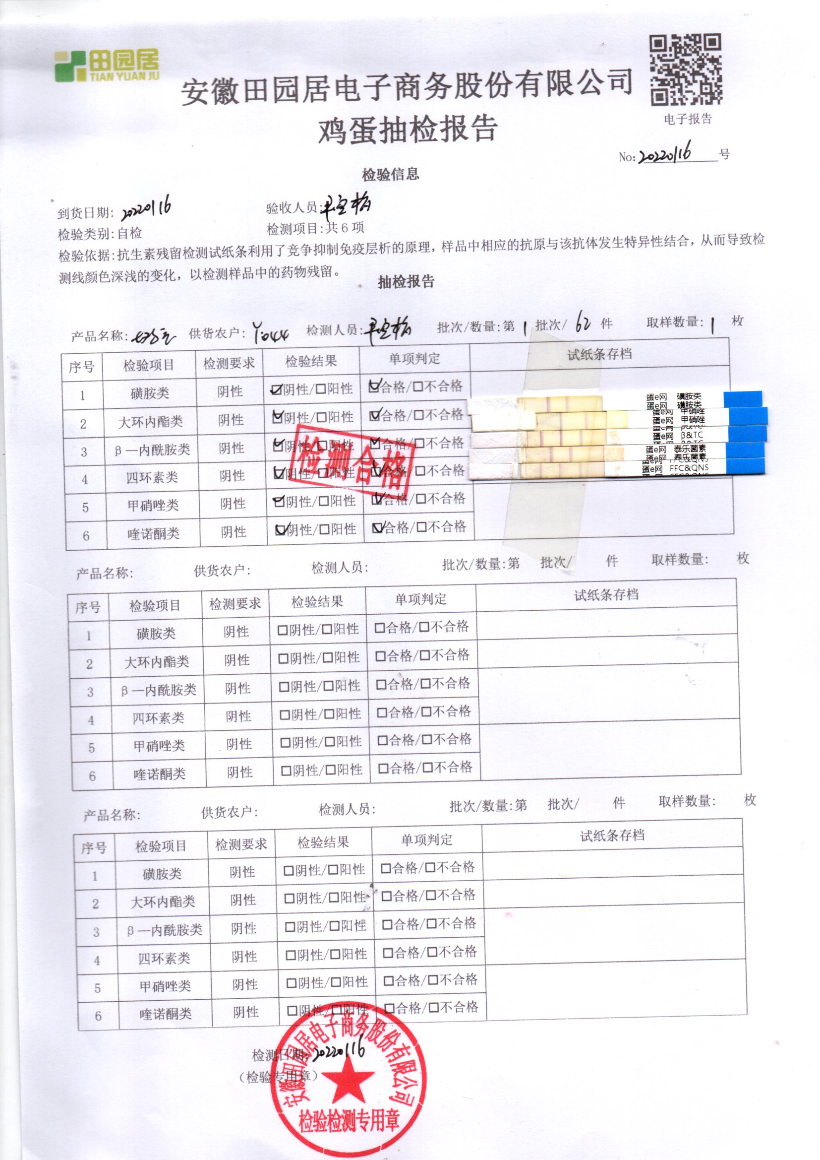 2022年01月16号鲜鸡蛋检测报告