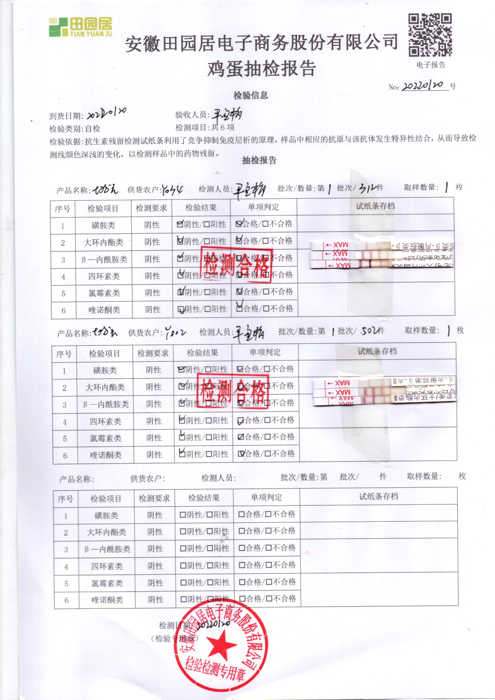 2022年01月16号鲜鸡蛋检测报告