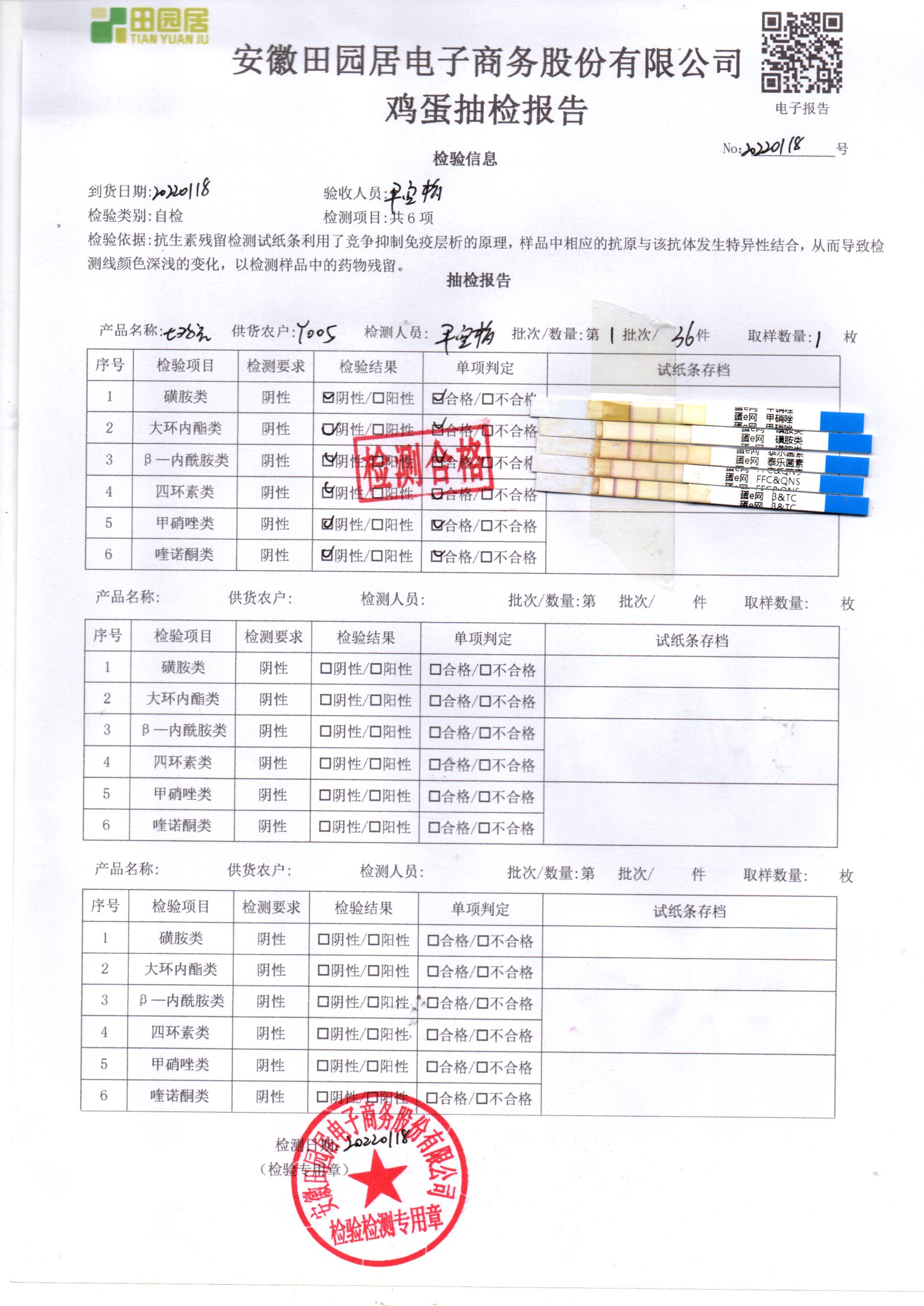 2022年01月18号鲜鸡蛋检测报告