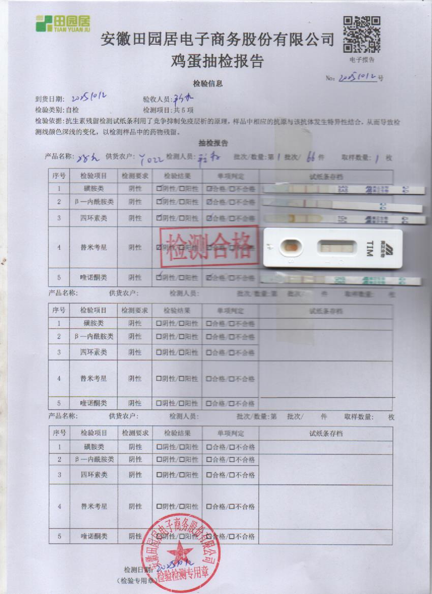 2025年10月12号鲜鸡蛋检测报告