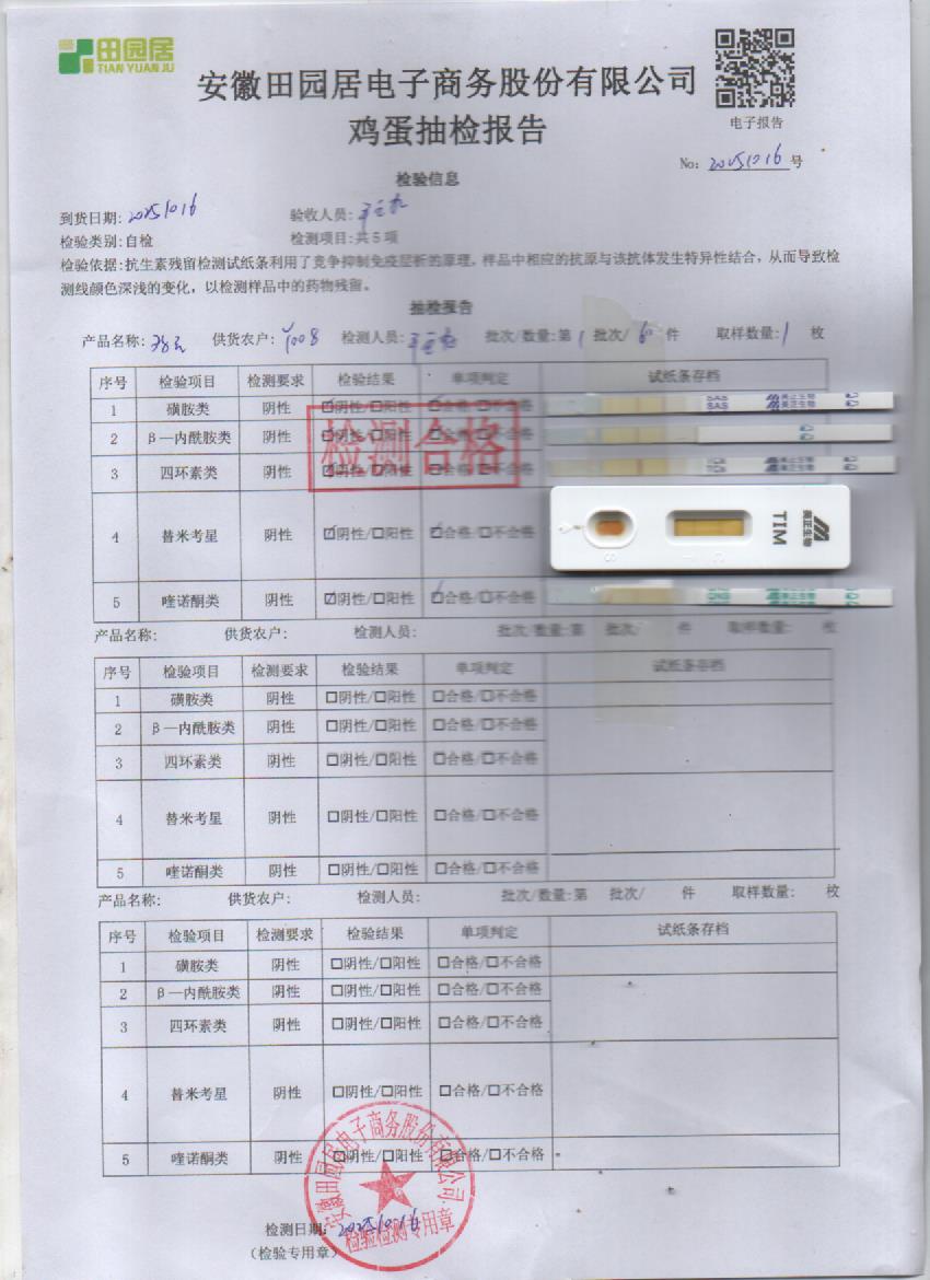 2025年10月15号鲜鸡蛋检测报告
