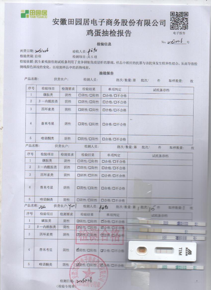 2025年10月26号鲜鸡蛋检测报告
